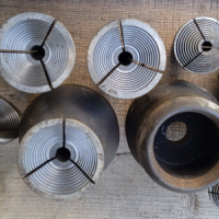 Sklíčidla , příruby, mezi kusy , Luneta, camlock hlava , nože, koníky a další od vercajk soustruhu, díl asi závitové hodinky 1200...